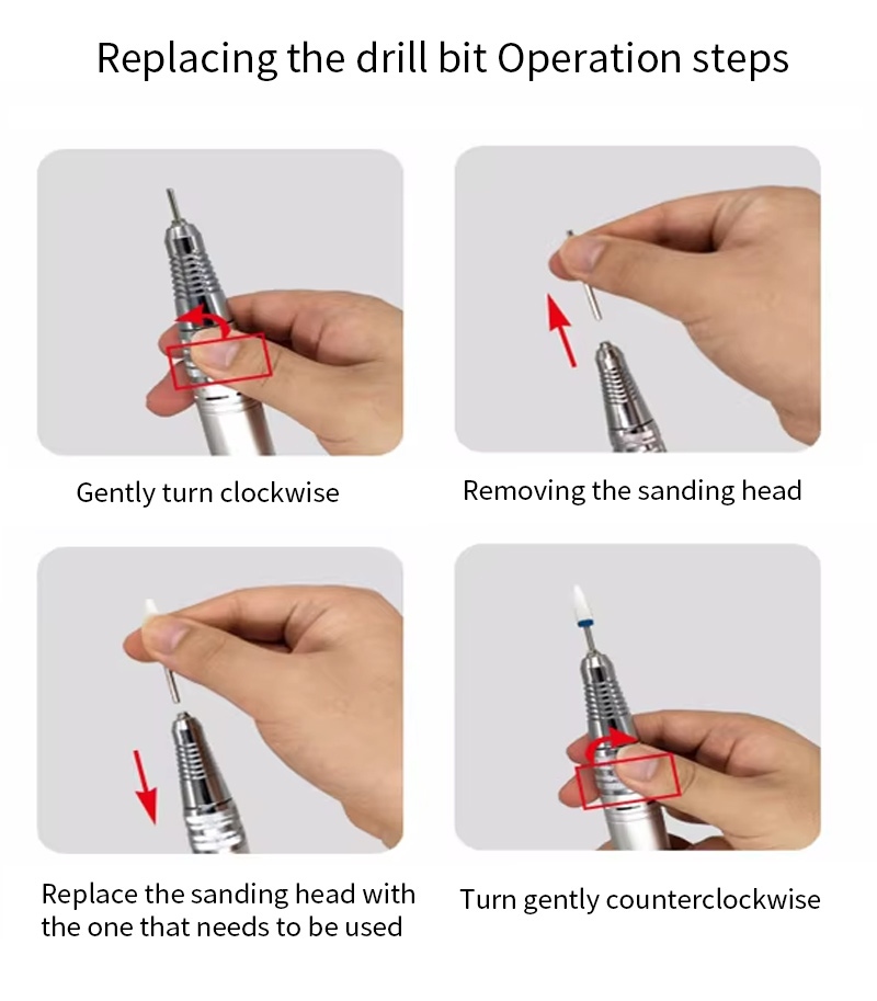 ይህ 30,000 ሩብ ደቂቃ የኤሌትሪክ ጥፍር መሰርሰሪያ መሰርሰሪያ መሰርሰሪያ ኦፕሬሽን ዘዴ ማለትም መሰካት እና ማውጣት ቀላል እና ምቹ የሆነ ምትክ ከተጠናቀቀ በኋላ መጠቀም ይቻላል::