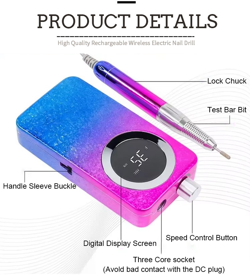ይህ 30,000 ሩብ በሰአት የኤሌትሪክ ጥፍር መሰርሰሪያ 2 ቀለሞች አሉት፣ ጥቁር/ነጭ/ግራጫ/ሰማያዊ/ቀይ/ሮዝ/ብርቱካን፣ ባለቀለም ቀለሞች።