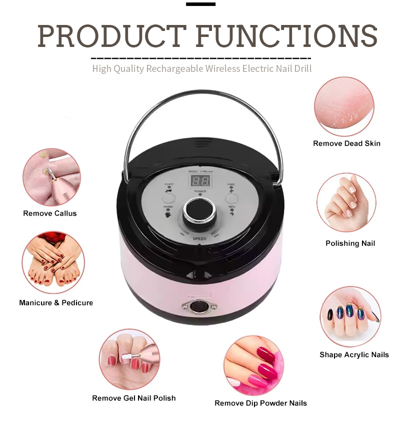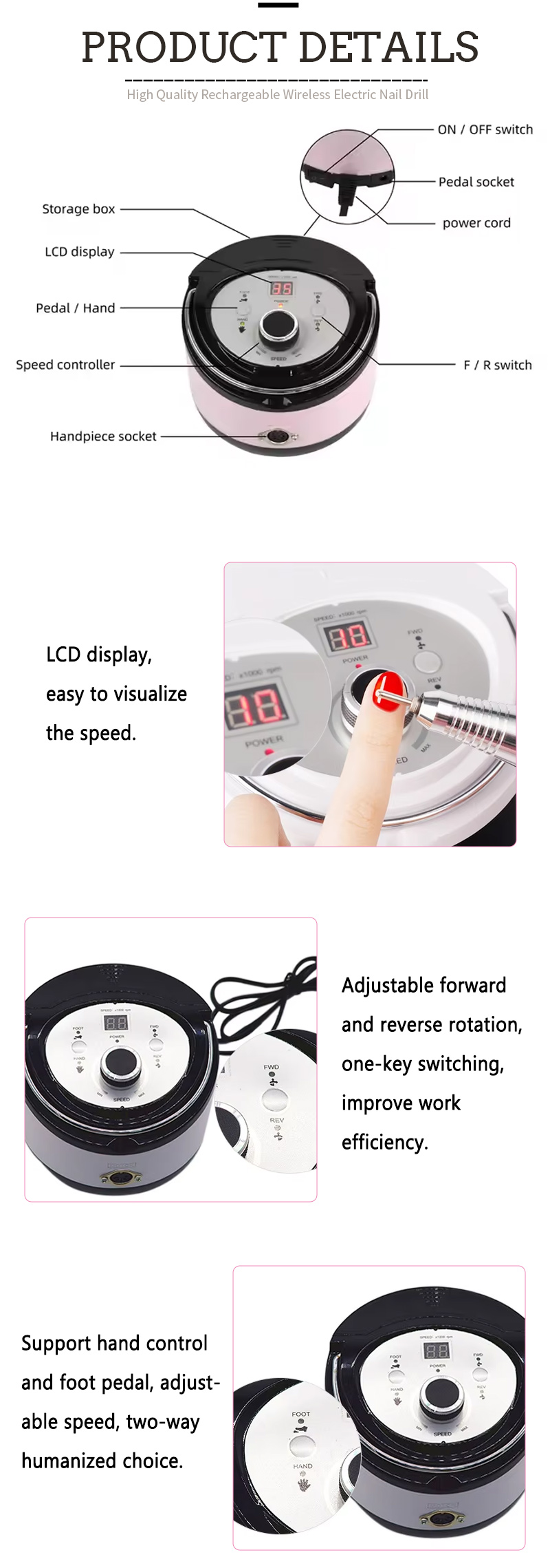 እንደገና ሊሞላ የሚችል የጥፍር ቁፋሮ አዘጋጅ የጥፍር ቁፋሮ በእግር ጣቶች 35 ዋ 35000rpm