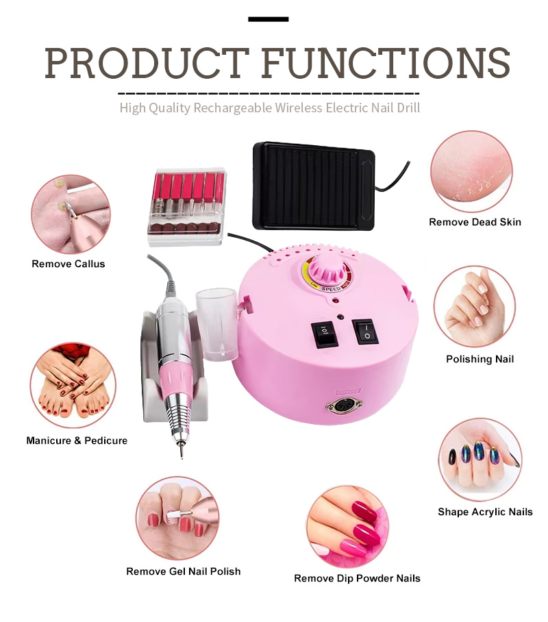 እንደገና ሊሞላ የሚችል የጥፍር ቁፋሮ አዘጋጅ የጥፍር ቁፋሮ በእግር ጣቶች 35 ዋ 35000rpm