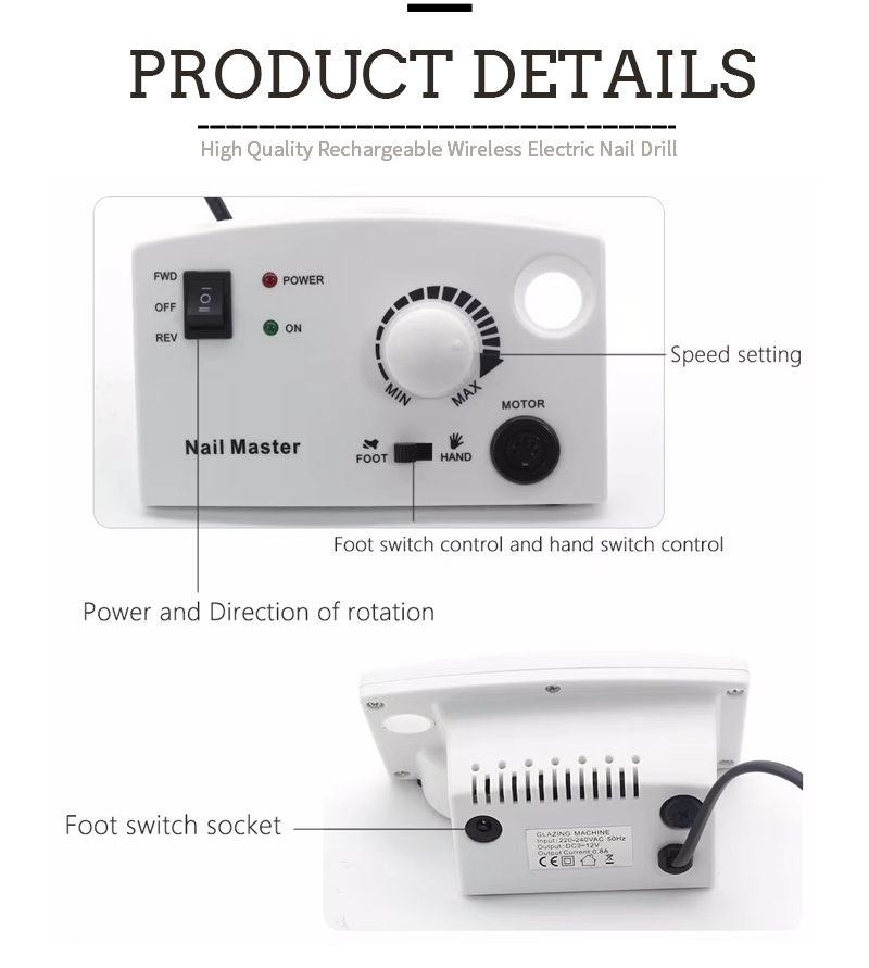የ 602 ከፍተኛ ፍጥነት ያላቸው 30,000 የ RPM የኤሌክትሪክ የጥፍር ቅጥያ ፋይል