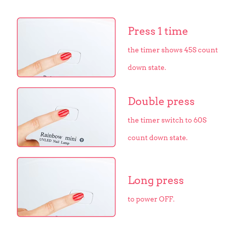• ለ 10 ሰከንድ ፈጣን ጄል ማከሚያ ከፍተኛ ኃይል ያላቸው የ LED አምፖሎች