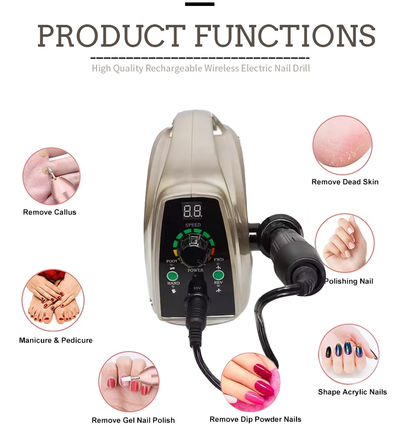 የምርት ገጽታ እና የእሳት ነበልባል የኤሌክትሪክ የጥፍር ቀለም ፋይል ከእጀታው ጋር