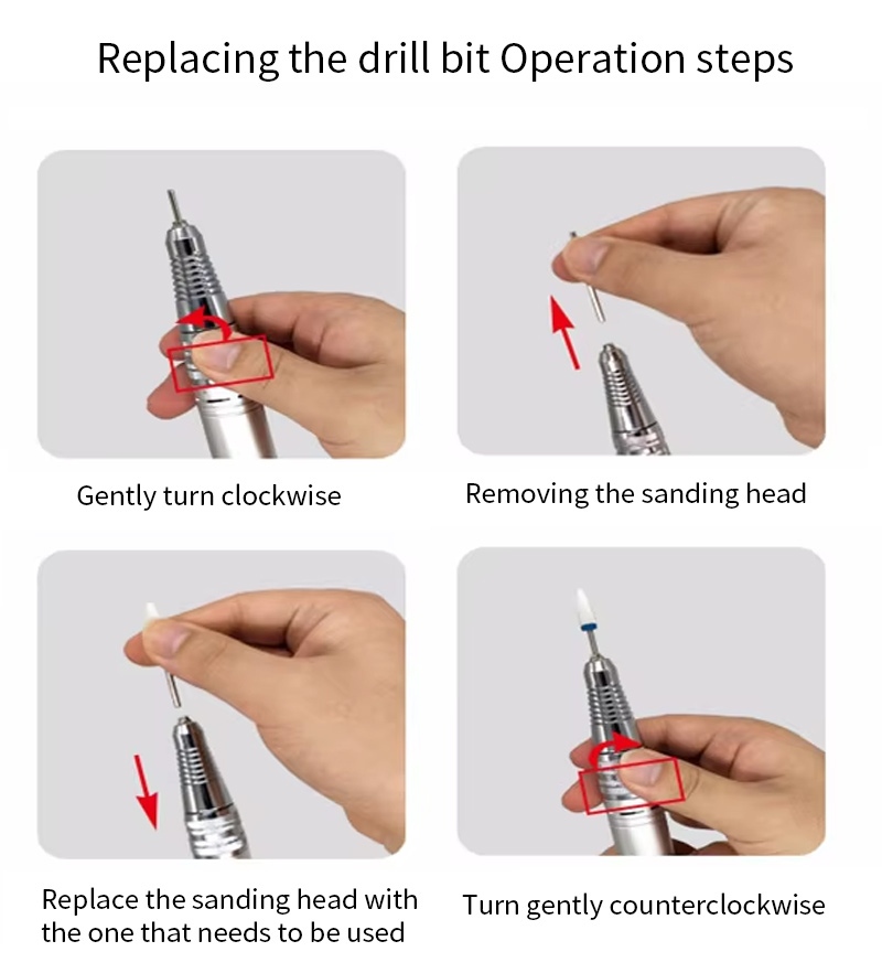 ይህ በእጅ የሚይዘው የጥፍር መሰርሰሪያ እና የፖሊሸር መተኪያ መሰርሰሪያ ኦፕሬሽን ዘዴ፣ ማለትም ተሰኪ እና ነቅሎ ማውጣት፣ ቀላል እና ምቹ፣ ምትክ ከተጠናቀቀ በኋላ መጠቀም ይቻላል።
