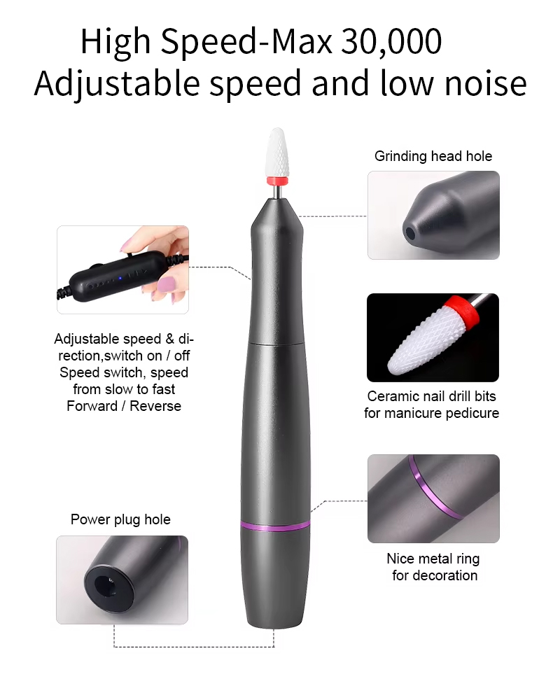 ዝቅተኛ ጫጫታ የብዕር ቅርጽ ያለው የጥፍር ጥበብ መሰርሰሪያ የምርት ባህሪ እና አተገባበር