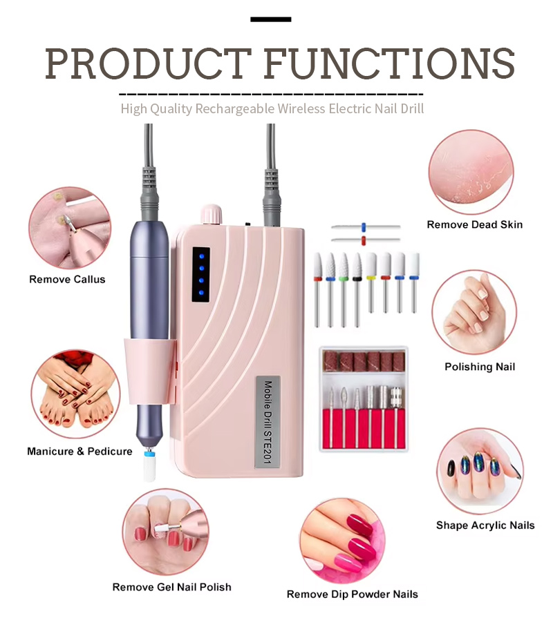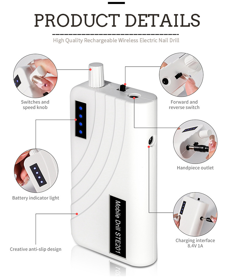 እንደገና ሊሞላ የሚችል የጥፍር ቁፋሮ አዘጋጅ የጥፍር ቁፋሮ በእግር ጣቶች 35 ዋ 35000rpm