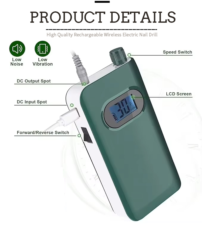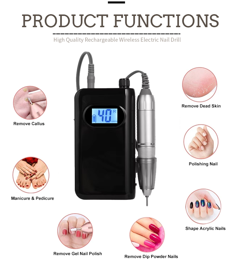 የ K91 ከፍተኛ ፍጥነት ያለው የ K91 ከፍተኛ ፍጥነት ያላቸው 40,000 RPM የኤሌክትሪክ የጥፍር ቅጥያ ፋይል