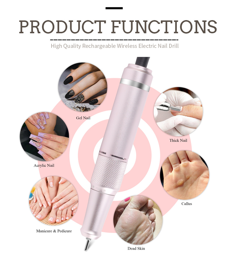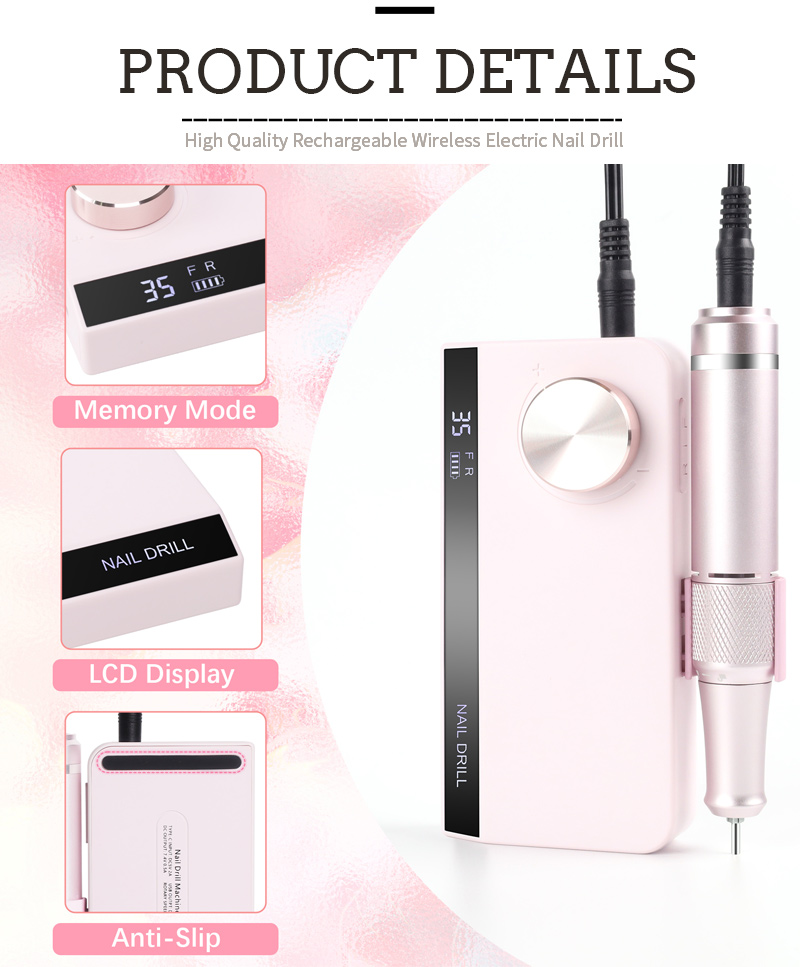 እንደገና ሊሞላ የሚችል የጥፍር ቁፋሮ አዘጋጅ የጥፍር ቁፋሮ በእግር ጣቶች 35 ዋ 35000rpm