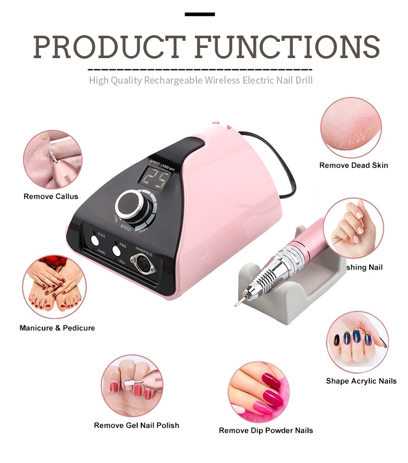 ይህ ፕሮፌሽናል ተንቀሳቃሽ የጥፍር መሰርሰሪያ ማሽን 35,000 ራፒኤም 2 ቀለሞች አሉት ፣ ጥቁር / ነጭ / ግራጫ / ሰማያዊ / ቀይ / ሮዝ / ብርቱካንማ ፣ ባለቀለም ቀለሞች።